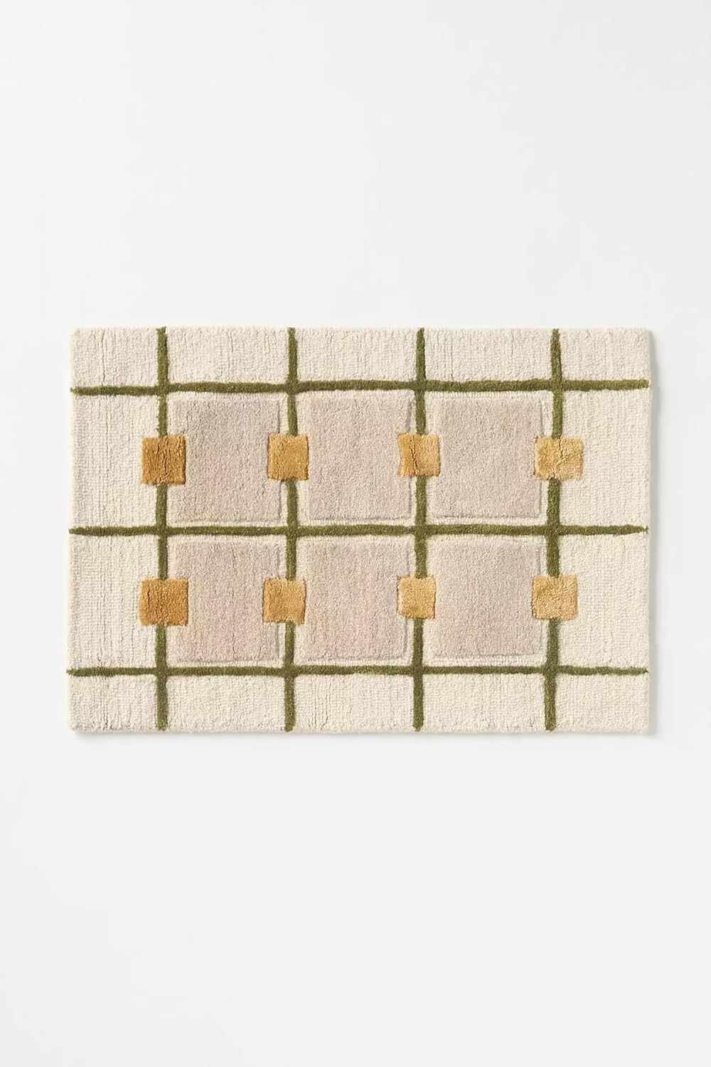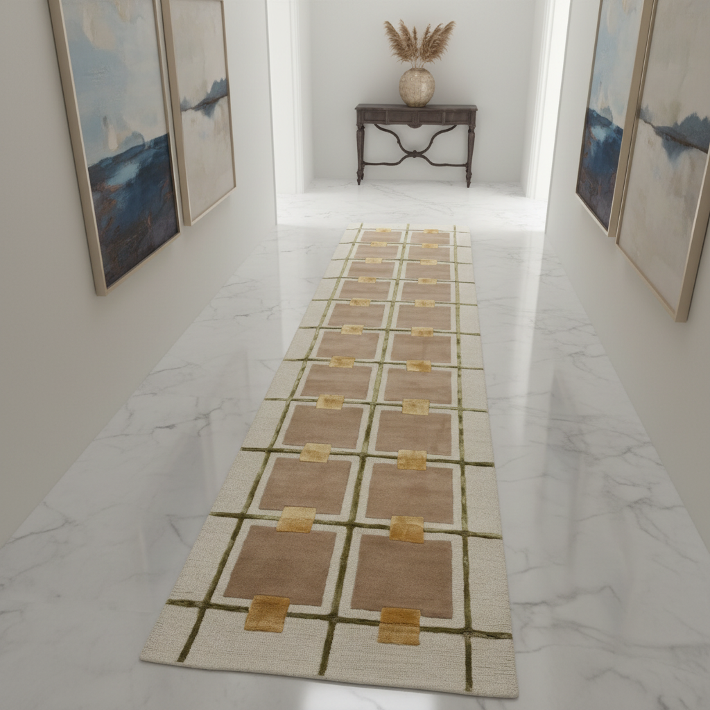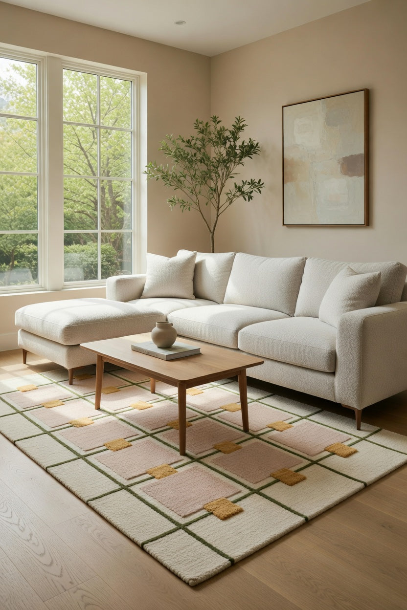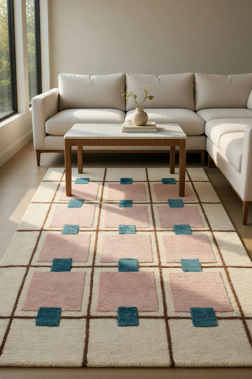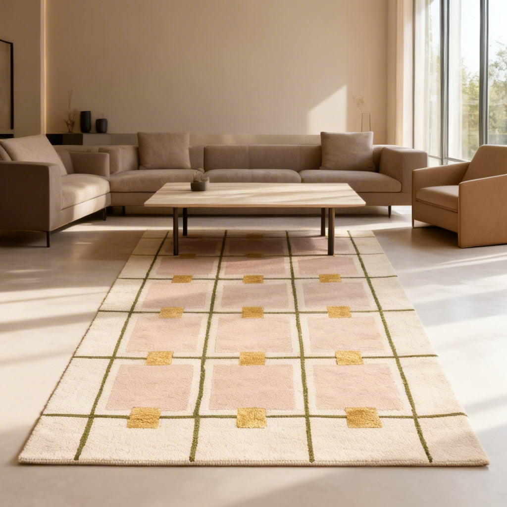 Greer Hand-Tufted Wool & Silk Area Rug - Geometric Grid Pattern, Soft Modern Carpet with Cotton Backing for Living Room, Bedroom & Nursery