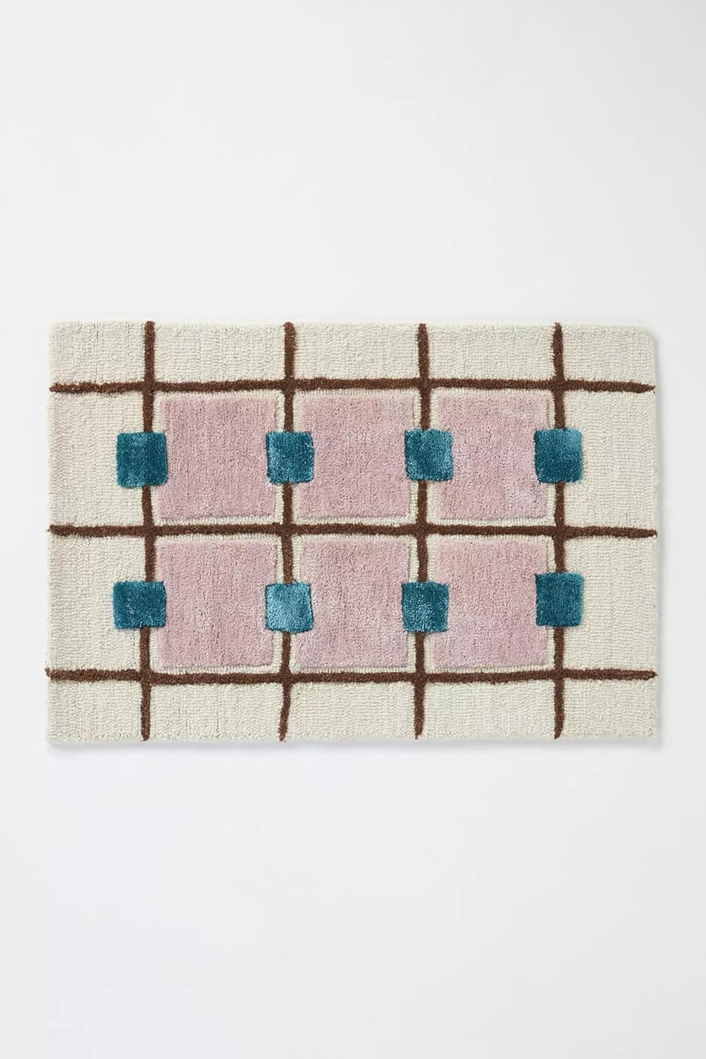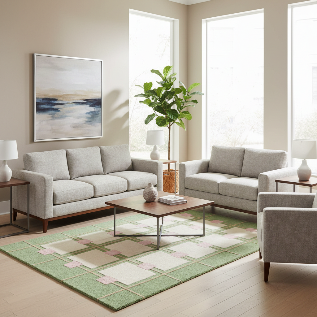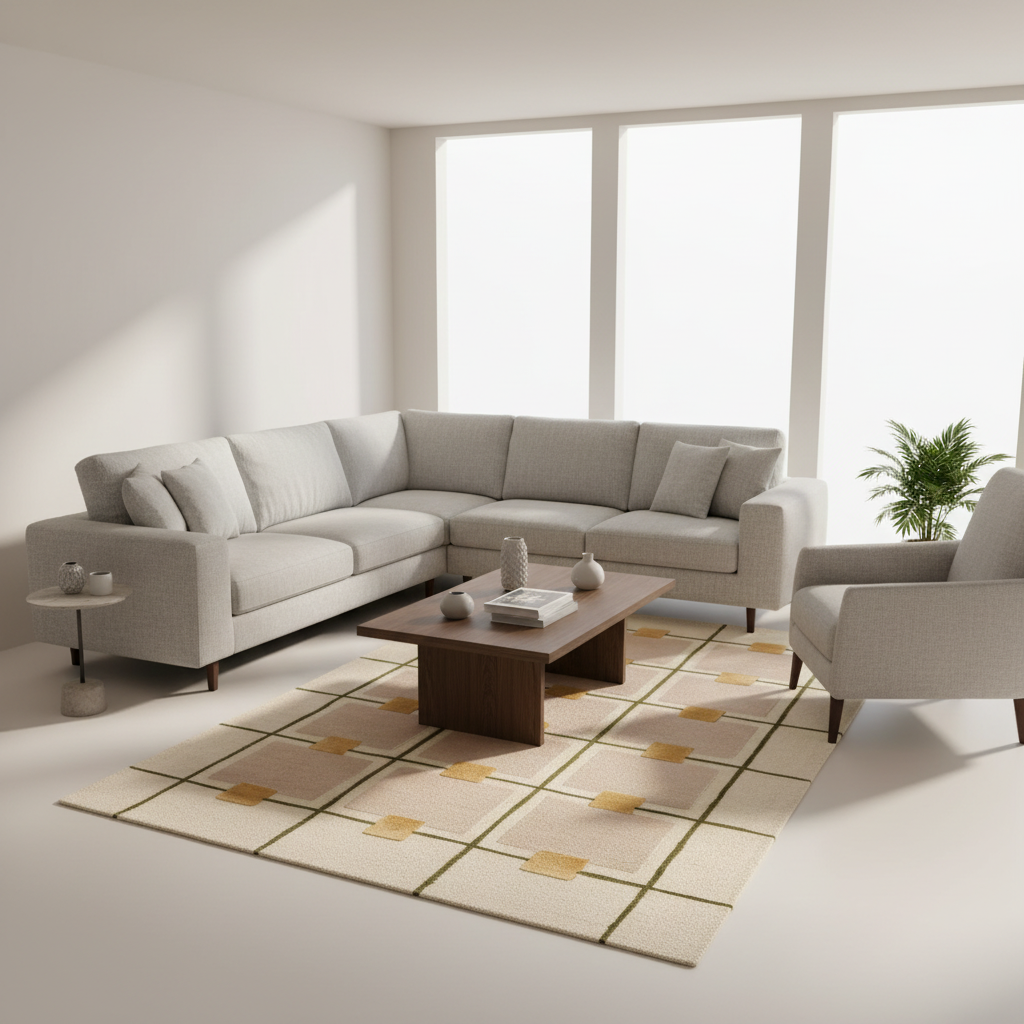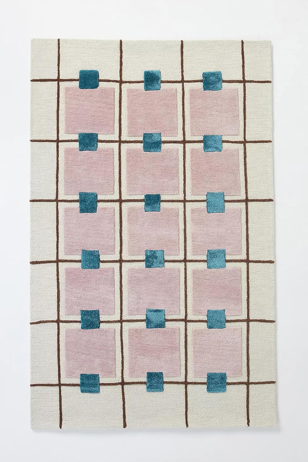 Greer Hand-Tufted Wool & Silk Area Rug - Geometric Grid Pattern, Soft Modern Carpet with Cotton Backing for Living Room, Bedroom & Nursery