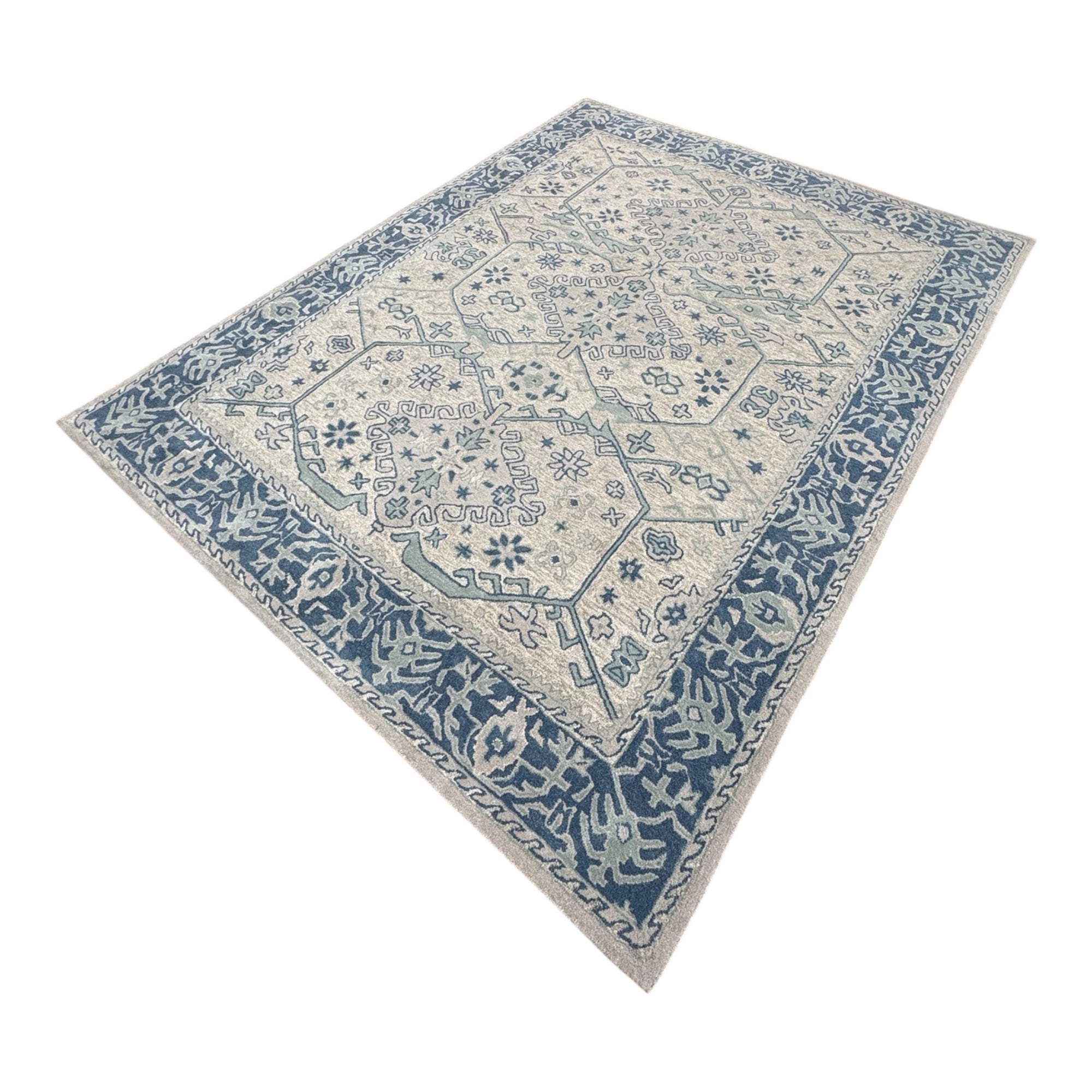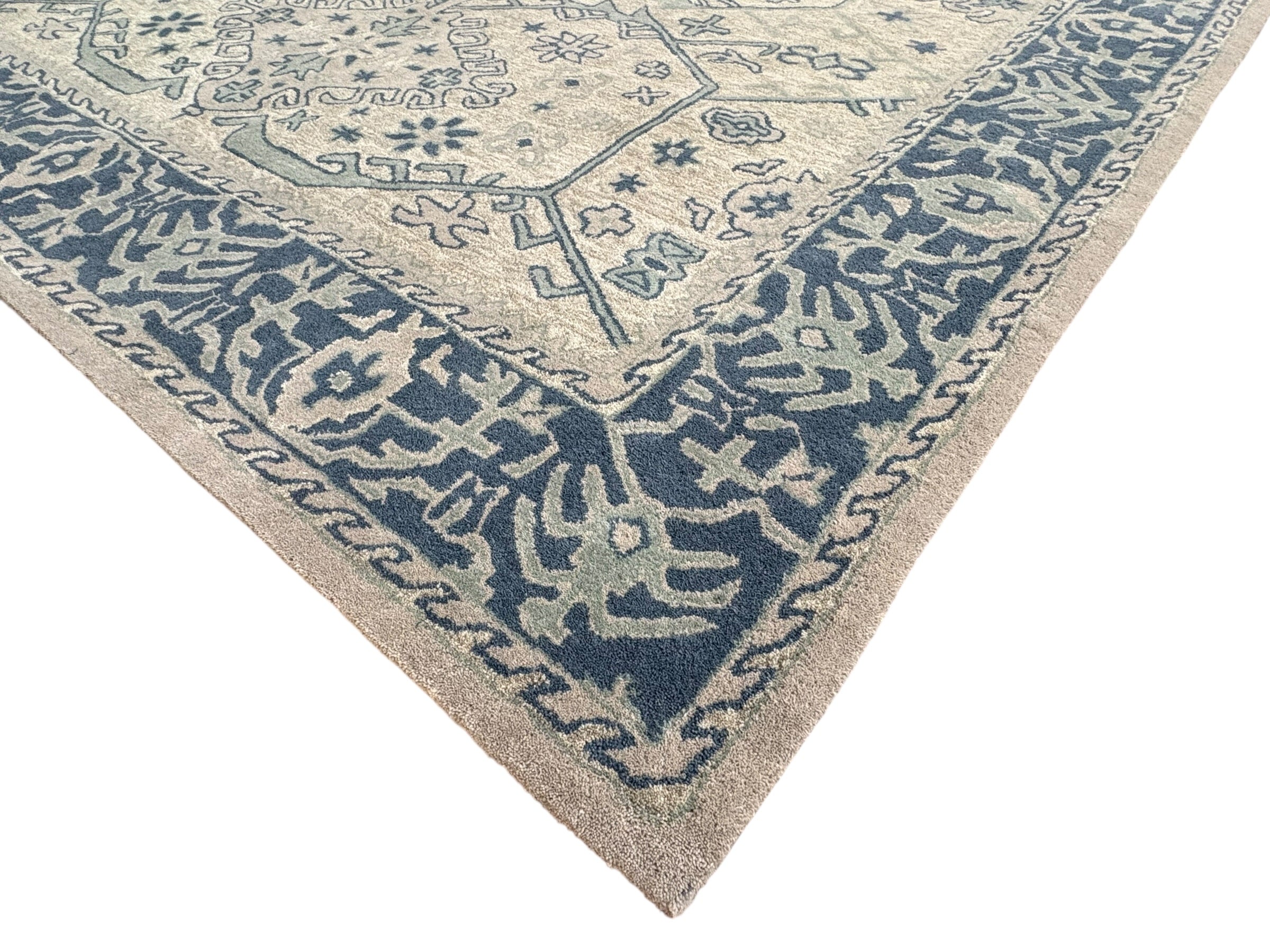 Elevate your interior with timeless elegance through the Avyay Rugs Vintage Wool Rug. Designed with classic medallion motifs and a soothing ivory base accented by rich blue patterns, this handcrafted rug brings heritage charm and modern sophistication into any space.