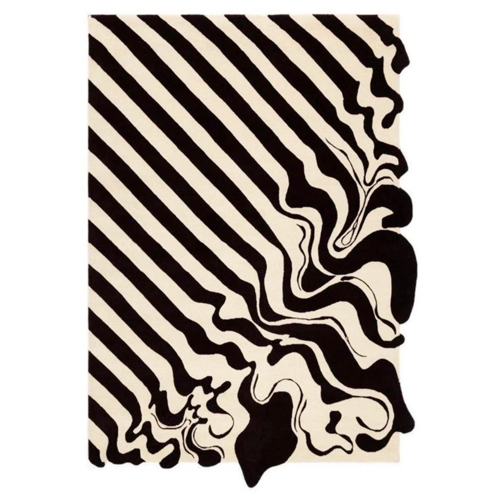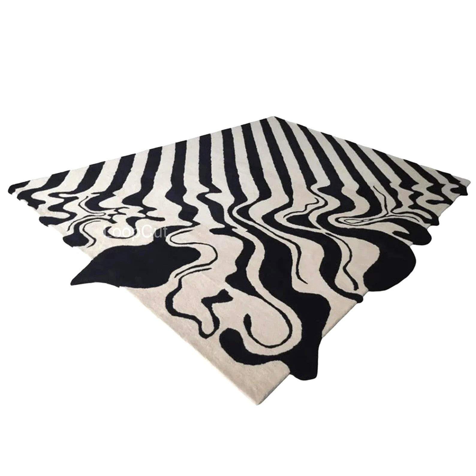 Handmade Irregular Shape Wool Area Rug B&W Soft Rugs Unique Modern Design Botanical Carpet Ideal for Living Room Bedroom and Home Decor