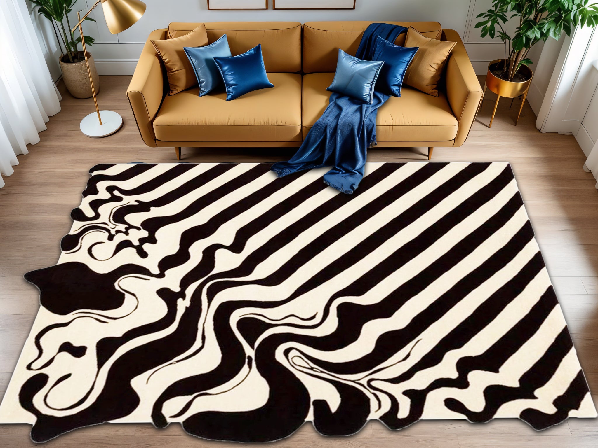 The unique free-form silhouette adds movement, depth, and a sculptural look that sets it apart from standard rectangular rugs — ideal for artistic, contemporary, or boho-inspired spaces.